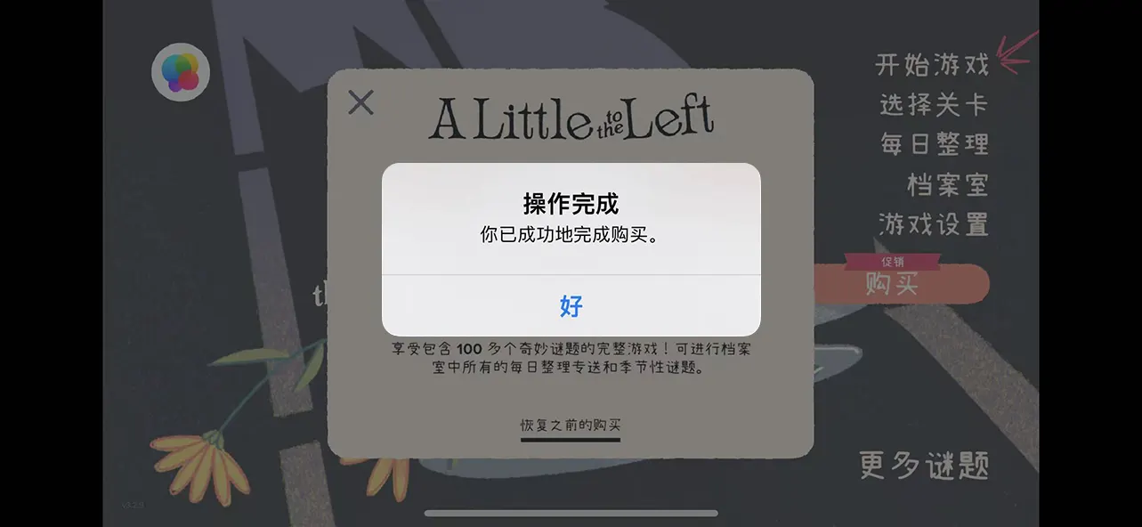 总结来说,《往左一点 A Little to the Left》是一款靠细节和创意打动人的小而美的解谜游戏,它没有炫酷的特效,也没有复杂的系统,就是用最简单的整理动作,唤起你内心对秩序、美感和日常细节的敏感,它治愈、温暖又解压,适合任何时候来一局放松自己。尤其适合喜欢整洁、爱收拾、注重生活仪式感的玩家,这游戏就像一杯温水、一缕阳光,静静陪着你,在混乱中找到属于自己的那一点秩序,一点平静,一点治愈。